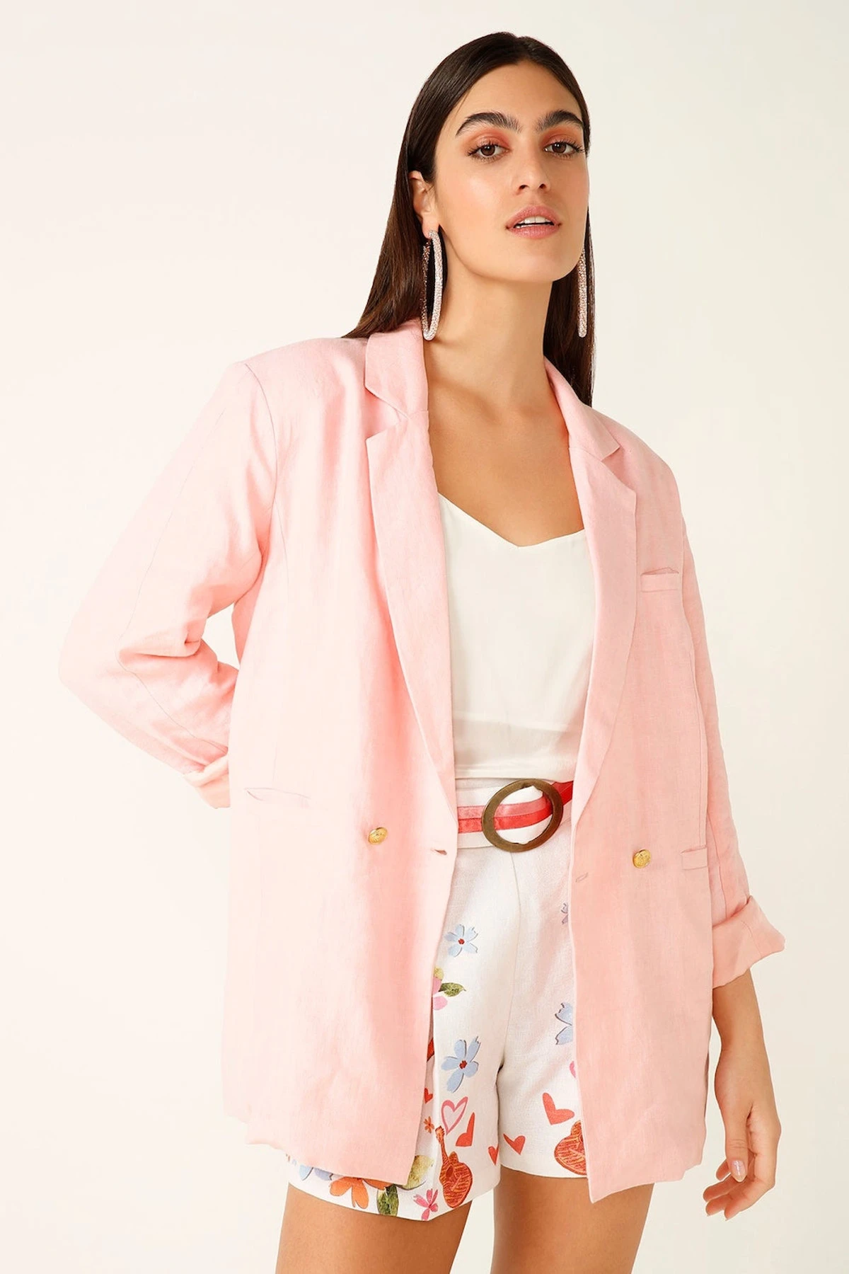 A relaxed, oversized blazer that will have you looking the business at any occasion. A double breasted closure, padded shoulders with just the right amount of oomphf and lined with breathable modal satin for comfort. A beautiful and timeless, trans-seasonal wonder piece.