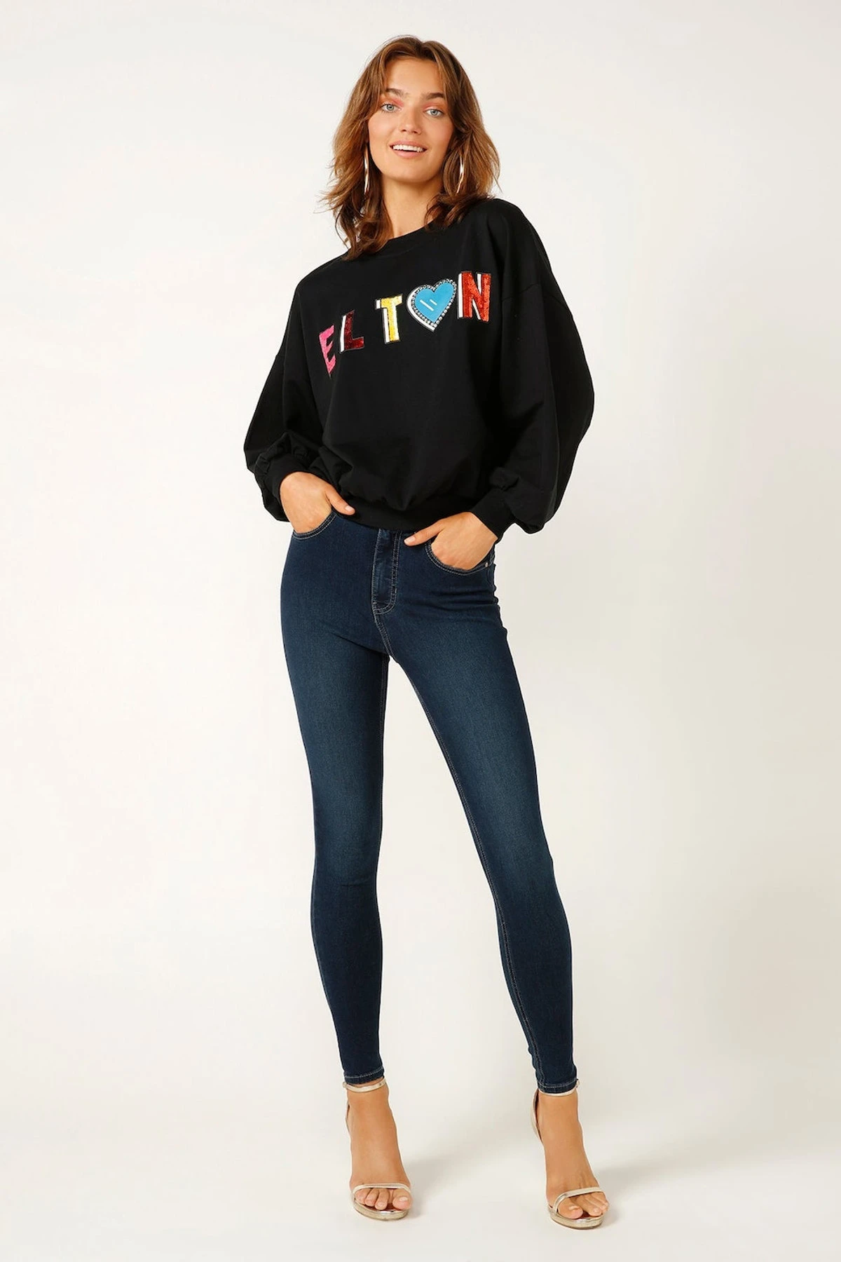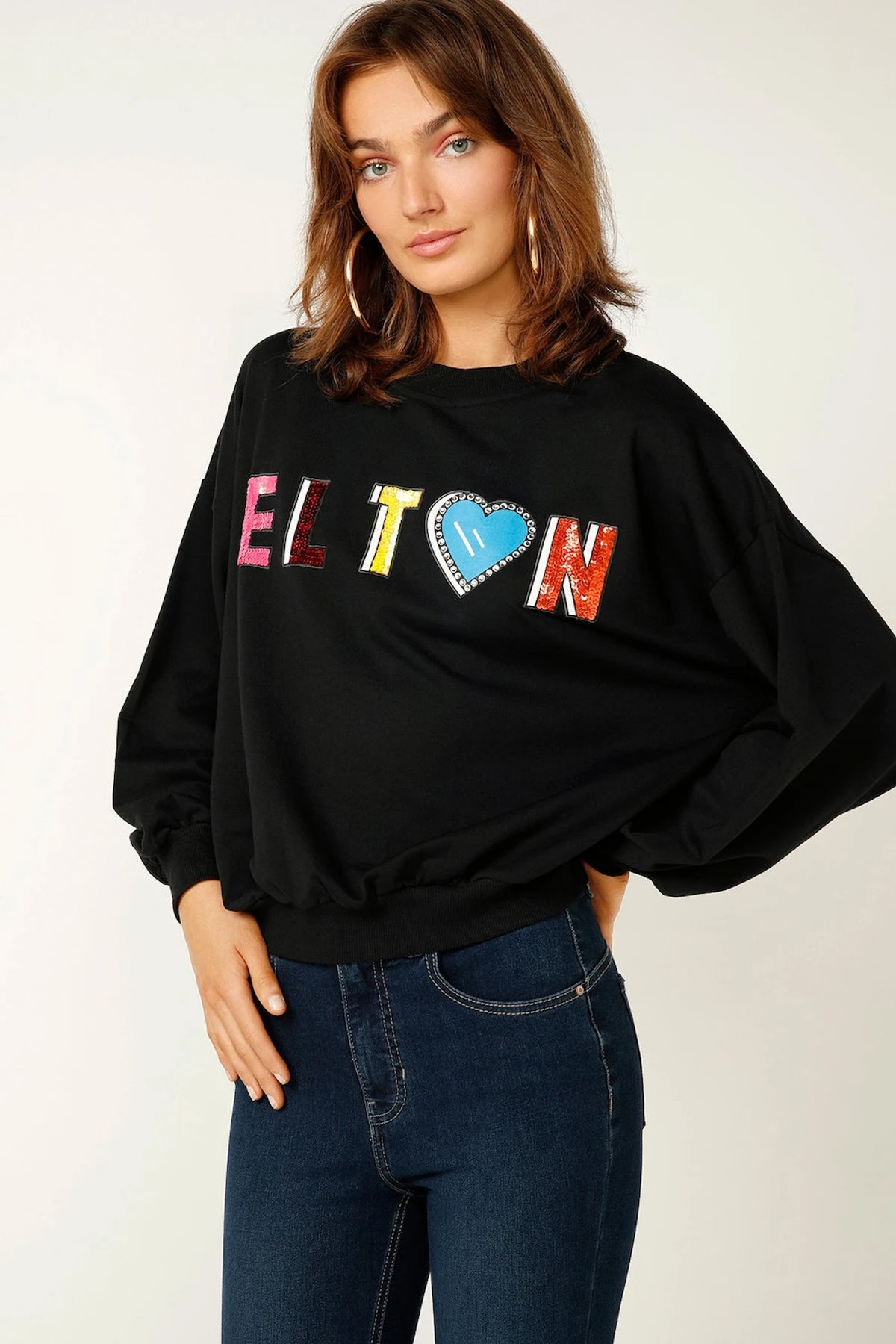 The perfect balance between comfort and cool; an oversized sweatshirt, emblazoned with sequins! Inspired by relaxed collage style, but elevated with a sprinkling of superstar.