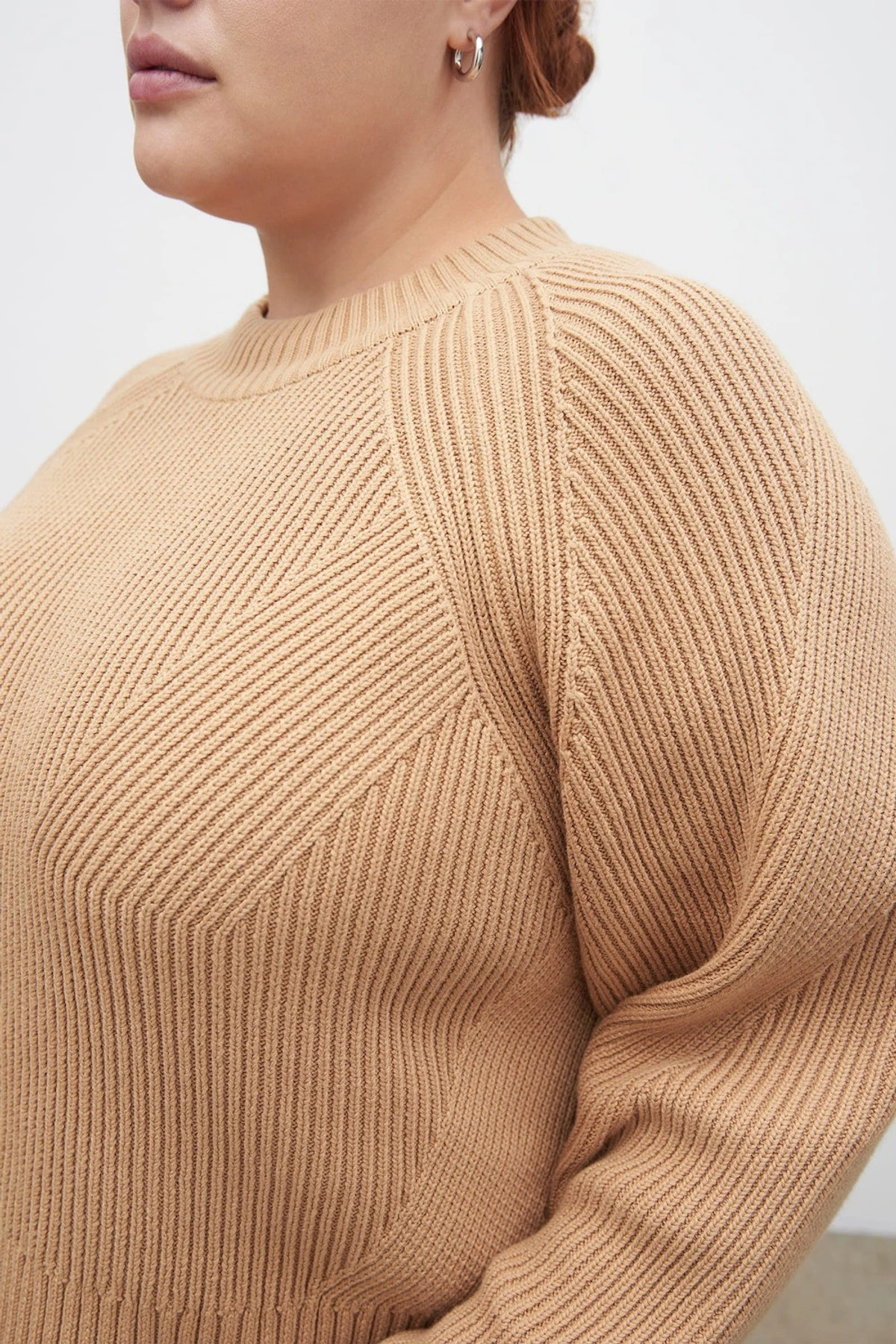 A crew neck jumper with an oversized fit. Made from 100% certified Fairtrade organic cotton and knitted in a fashioned rib.