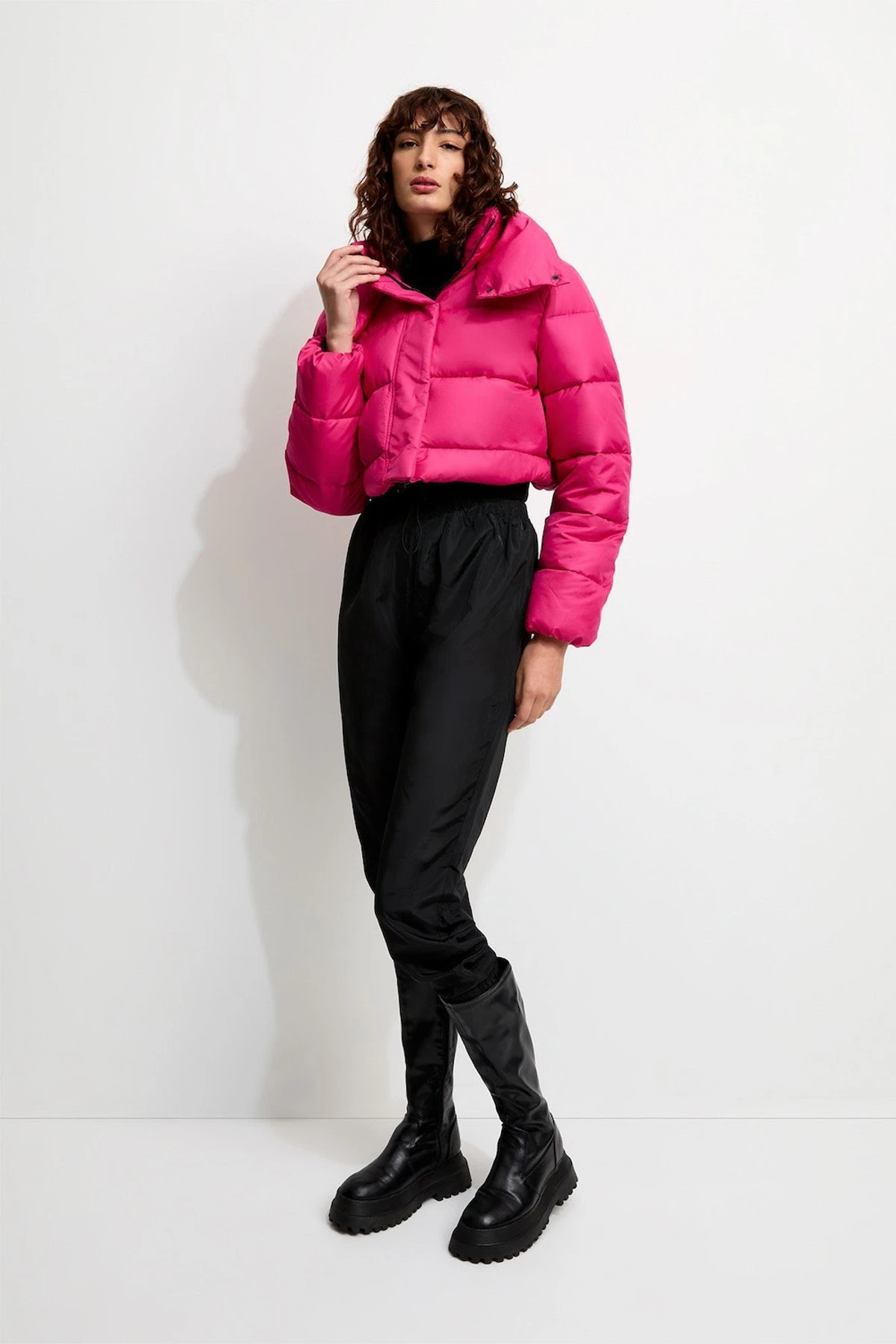 The Phaedra Jacket is a high cropped puffer style. This jacket features a quilted construction, press stud closures and zip, and a high padded neckline for a bold and ethical athleisure look. We styled this piece with a nylon tech look, but can be worn with a dress and heels or your favourite denim.Â